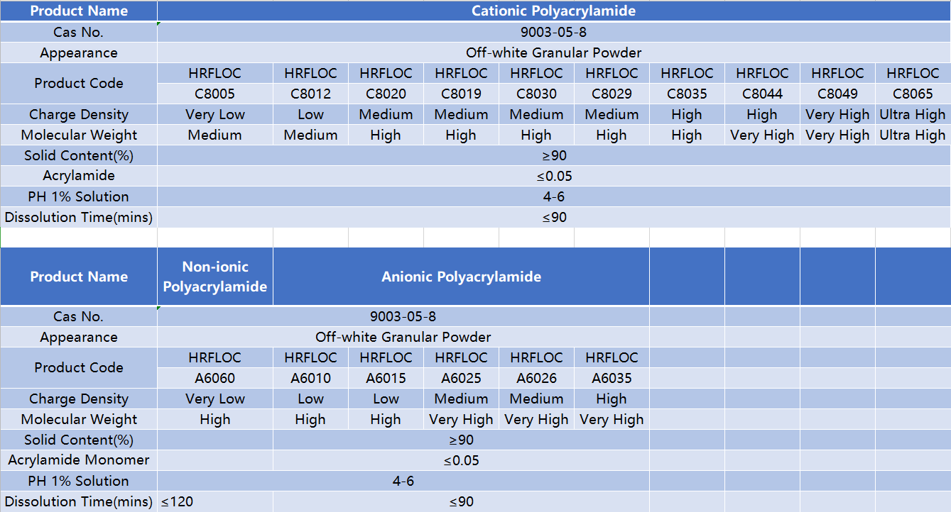 With 20+ years of expertise in water treatment chemicals, Hangrui offers a complete range of polyacrylamide flocculants tailored to different applications. Our experienced team will help you quickly identify the right type—ensuring higher efficiency, lower cost, and reliable performance in your process.